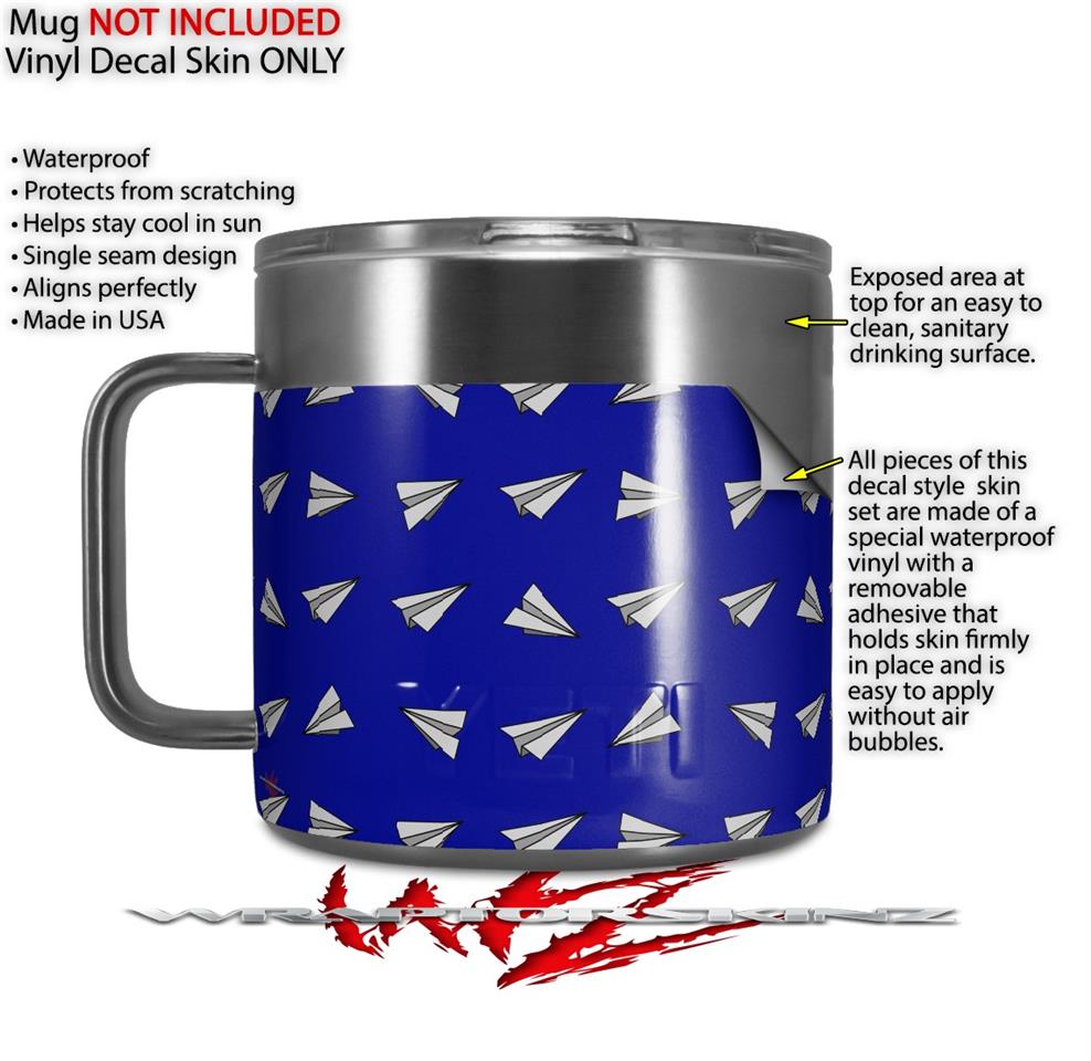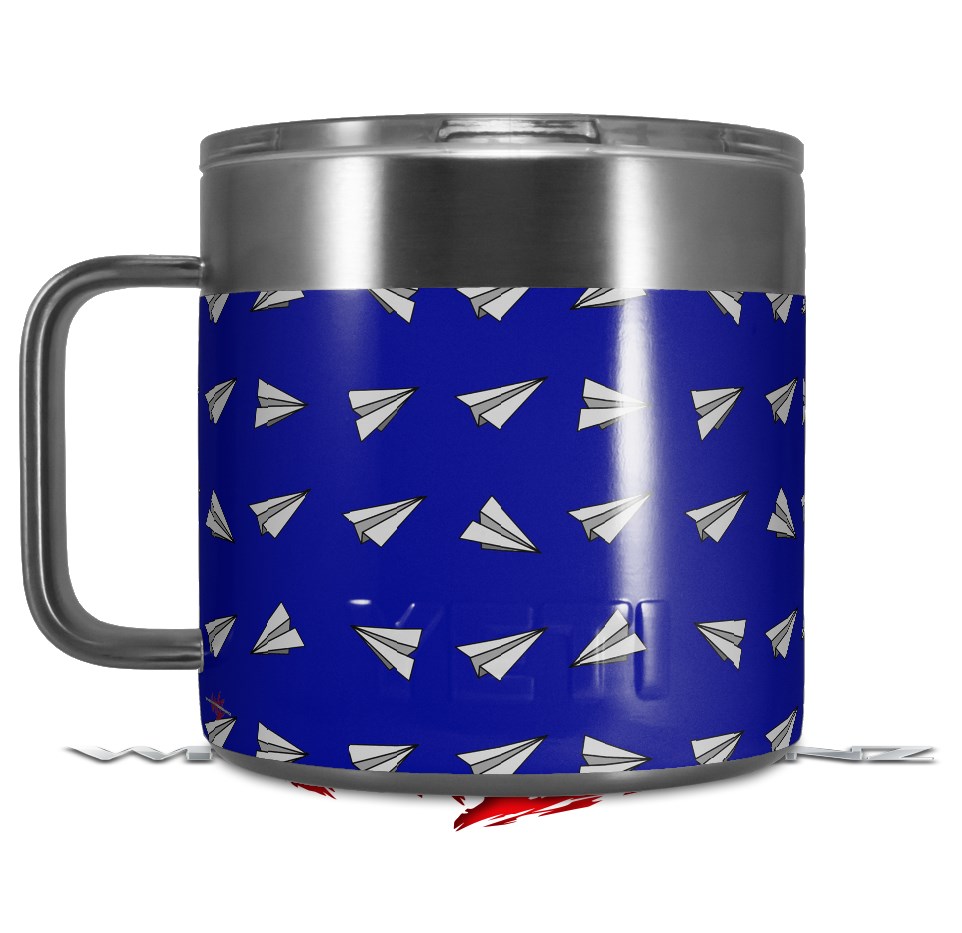 Skin Decal Wrap for Yeti Coffee Mug 14oz Paper Planes Royal Blue - 14 oz CUP NOT INCLUDED by WraptorSkinz