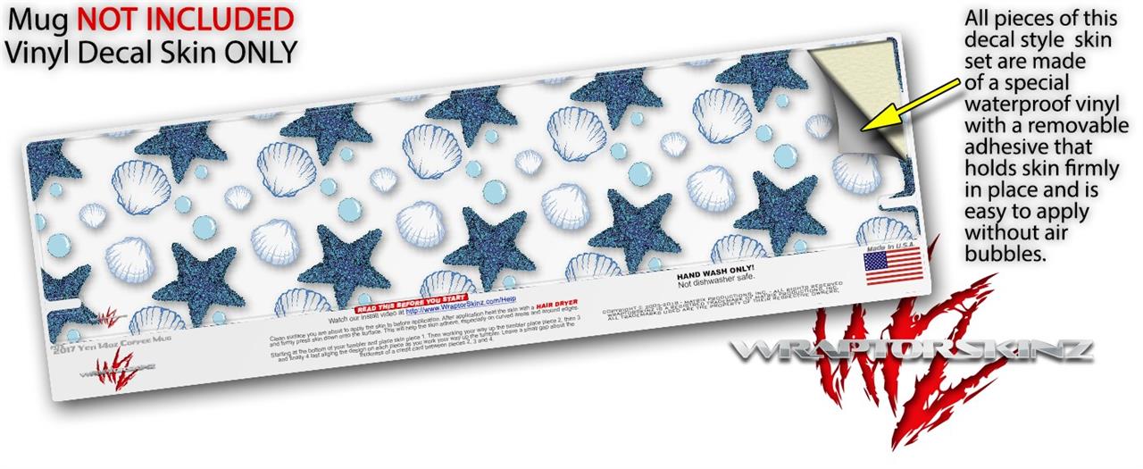 Skin Decal Wrap for Yeti Coffee Mug 14oz Starfish and Sea Shells White - 14 oz CUP NOT INCLUDED by WraptorSkinz