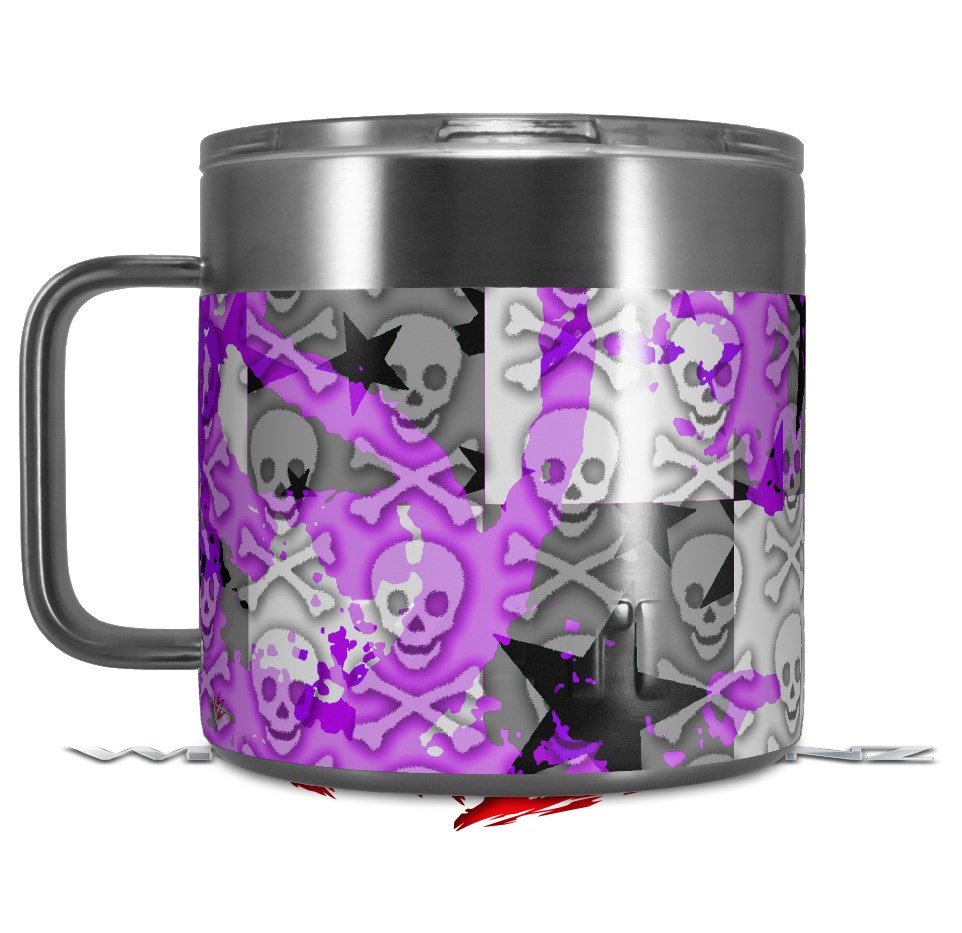 Skin Decal Wrap for Yeti Coffee Mug 14oz Purple Checker Skull Splatter - 14 oz CUP NOT INCLUDED by WraptorSkinz