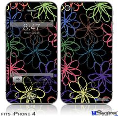 iPhone 4 Decal Style Vinyl Skin - Kearas Flowers on Black (DOES NOT fit newer iPhone 4S)