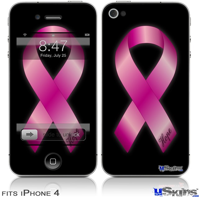 iPhone 4 Decal Style Vinyl Skin - Hope Breast Cancer Pink Ribbon on Black (DOES NOT fit newer iPhone 4S)