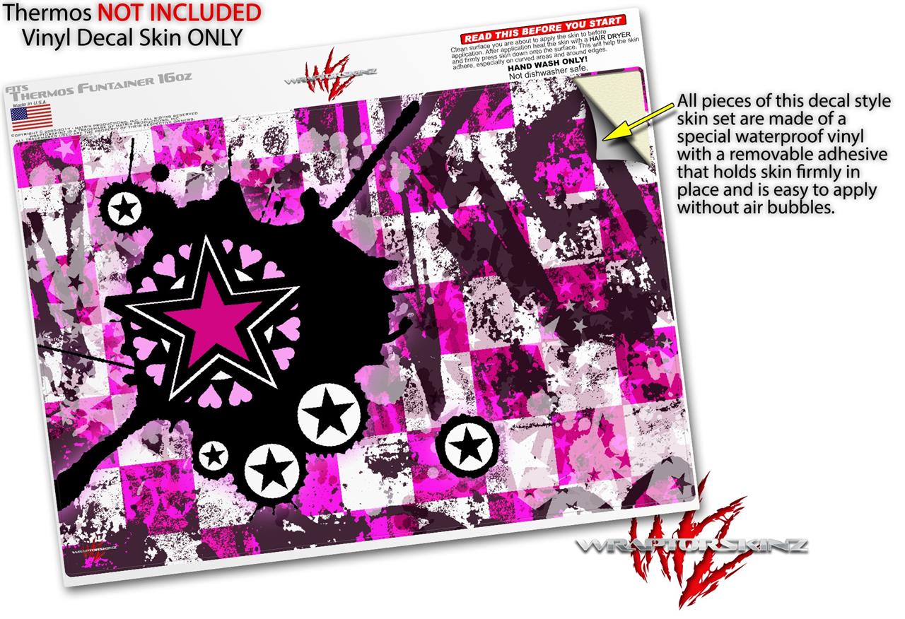 Skin Decal Wrap for Thermos Funtainer 16oz Bottle Pink Star Splatter (BOTTLE NOT INCLUDED) by WraptorSkinz