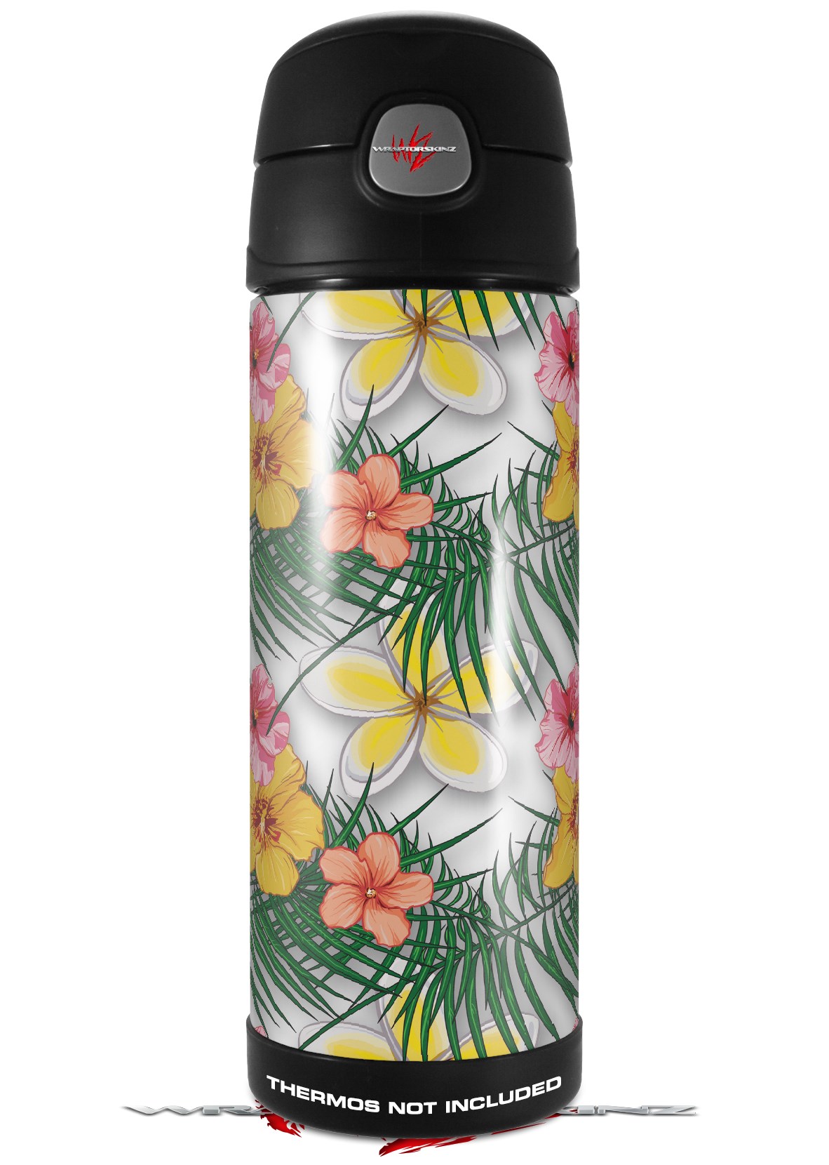 Skin Decal Wrap for Thermos Funtainer 16oz Bottle Beach Flowers 02 White (BOTTLE NOT INCLUDED) by WraptorSkinz
