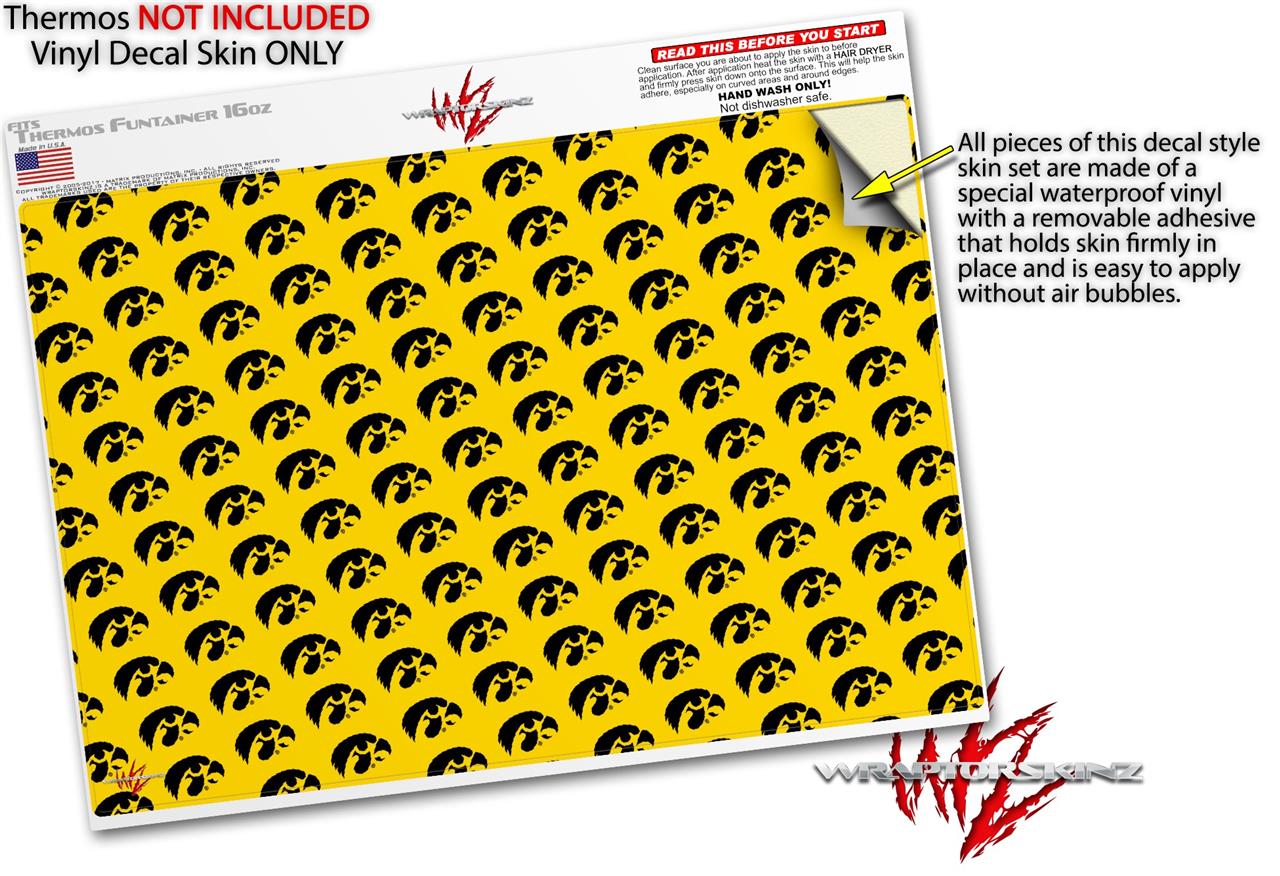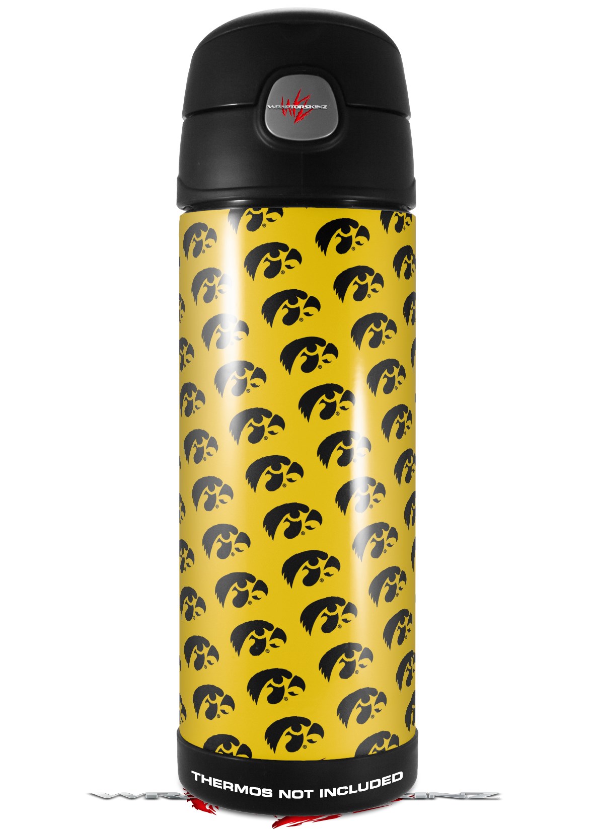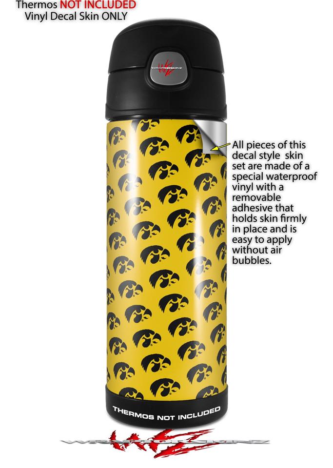 Skin Decal Wrap for Thermos Funtainer 16oz Bottle Iowa Hawkeyes Tigerhawk Tiled 06 Black on Gold (BOTTLE NOT INCLUDED) by WraptorSkinz
