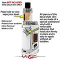 WraptorSkinz® skin wraps are printed using superb photo quality designs and vibrant colors printed with special fade resistant inks that last even in direct sun for years. WraptorSkinz are a composite of two layers of commercial grade materials. The bottom layer is a soft, flexible vinyl with a special removable adhesive that is easily positioned, applied without air bubbles. Next we print the bottom layer with UV protected, fade resistant inks that deliver superb photo quality designs in vibrant colors. Finally we bond a professional grade laminate over the entire skin adding a glossy protective finish. This product is not affiliated with or endorsed by the Smok brand.