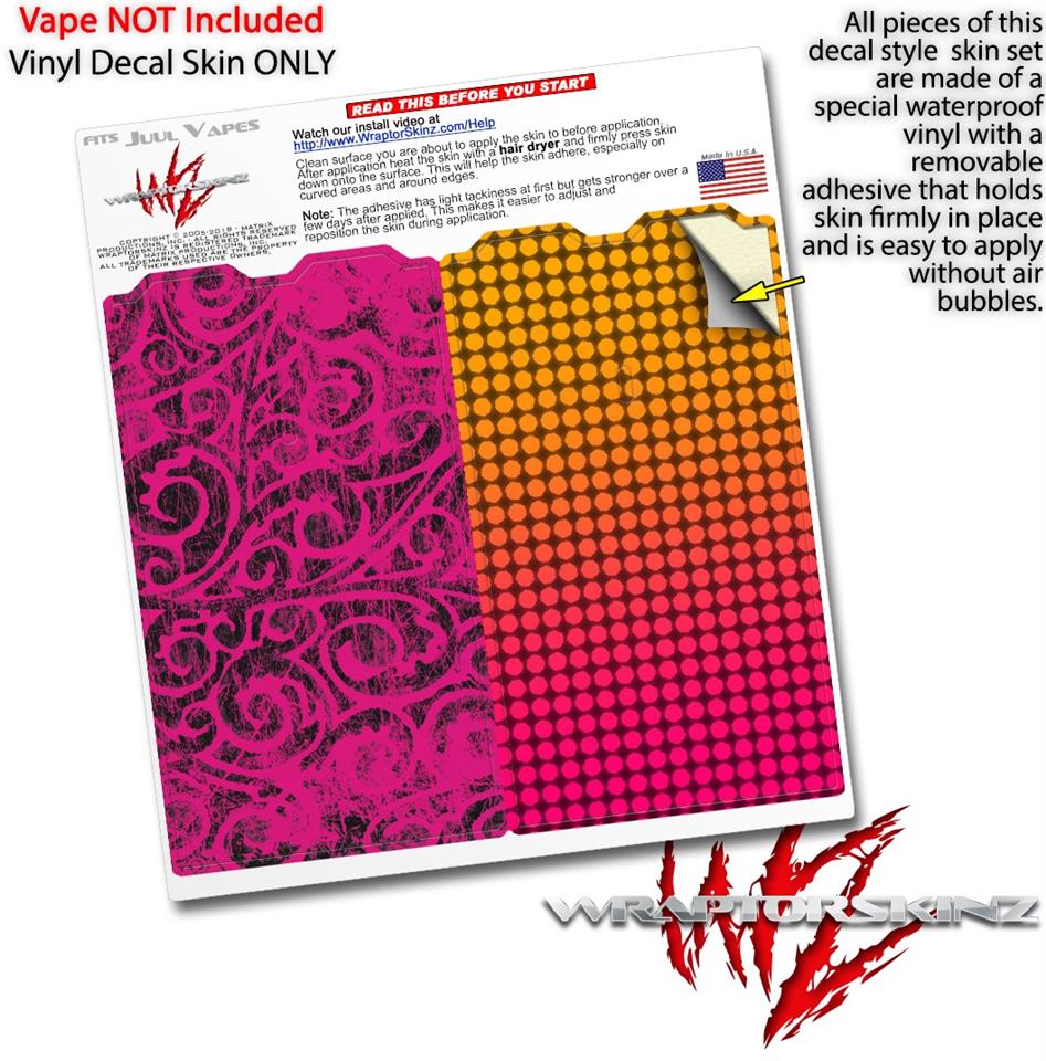 WraptorSkinz® skin wraps are printed using superb photo quality designs and vibrant colors printed with special fade resistant inks that last even in direct sun for years. WraptorSkinz are a composite of two layers of commercial grade materials. The bottom layer is a soft, flexible vinyl with a special removable adhesive that is easily positioned, applied without air bubbles. Next we print the bottom layer with UV protected, fade resistant inks that deliver superb photo quality designs in vibrant colors. Finally we bond a professional grade laminate over the entire skin adding a glossy protective finish. This product is not affiliated with or endorsed by the Juul brand.