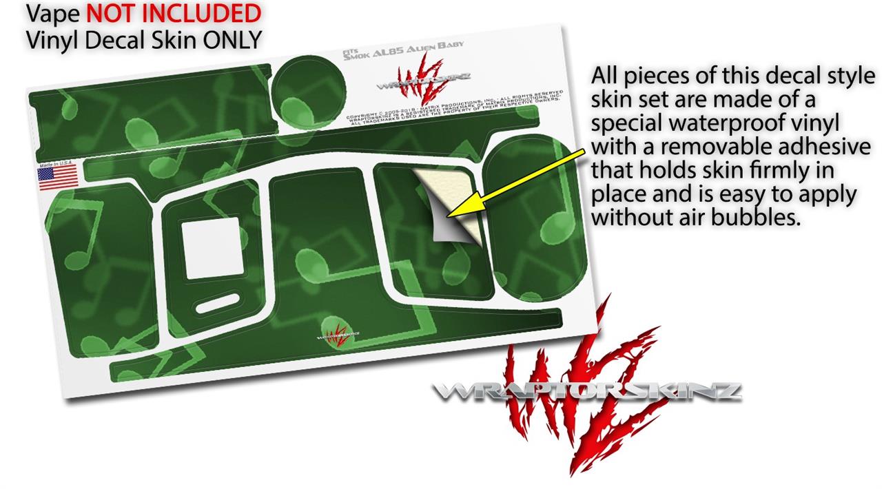 Skin Decal Wrap for Smok AL85 Alien Baby Bokeh Music Green VAPE NOT INCLUDED