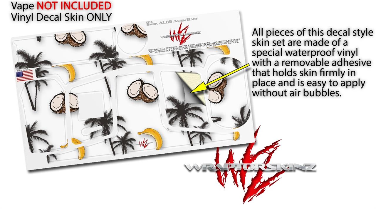 Skin Decal Wrap for Smok AL85 Alien Baby Coconuts Palm Trees and Bananas White VAPE NOT INCLUDED