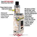 WraptorSkinz® skin wraps are printed using superb photo quality designs and vibrant colors printed with special fade resistant inks that last even in direct sun for years. WraptorSkinz are a composite of two layers of commercial grade materials. The bottom layer is a soft, flexible vinyl with a special removable adhesive that is easily positioned, applied without air bubbles. Next we print the bottom layer with UV protected, fade resistant inks that deliver superb photo quality designs in vibrant colors. Finally we bond a professional grade laminate over the entire skin adding a glossy protective finish. This product is not affiliated with or endorsed by the Smok brand.