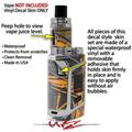WraptorSkinz® skin wraps are printed using superb photo quality designs and vibrant colors printed with special fade resistant inks that last even in direct sun for years. WraptorSkinz are a composite of two layers of commercial grade materials. The bottom layer is a soft, flexible vinyl with a special removable adhesive that is easily positioned, applied without air bubbles. Next we print the bottom layer with UV protected, fade resistant inks that deliver superb photo quality designs in vibrant colors. Finally we bond a professional grade laminate over the entire skin adding a glossy protective finish. This product is not affiliated with or endorsed by the Smok brand.