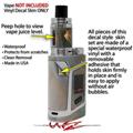 WraptorSkinz® skin wraps are printed using superb photo quality designs and vibrant colors printed with special fade resistant inks that last even in direct sun for years. WraptorSkinz are a composite of two layers of commercial grade materials. The bottom layer is a soft, flexible vinyl with a special removable adhesive that is easily positioned, applied without air bubbles. Next we print the bottom layer with UV protected, fade resistant inks that deliver superb photo quality designs in vibrant colors. Finally we bond a professional grade laminate over the entire skin adding a glossy protective finish. This product is not affiliated with or endorsed by the Smok brand.