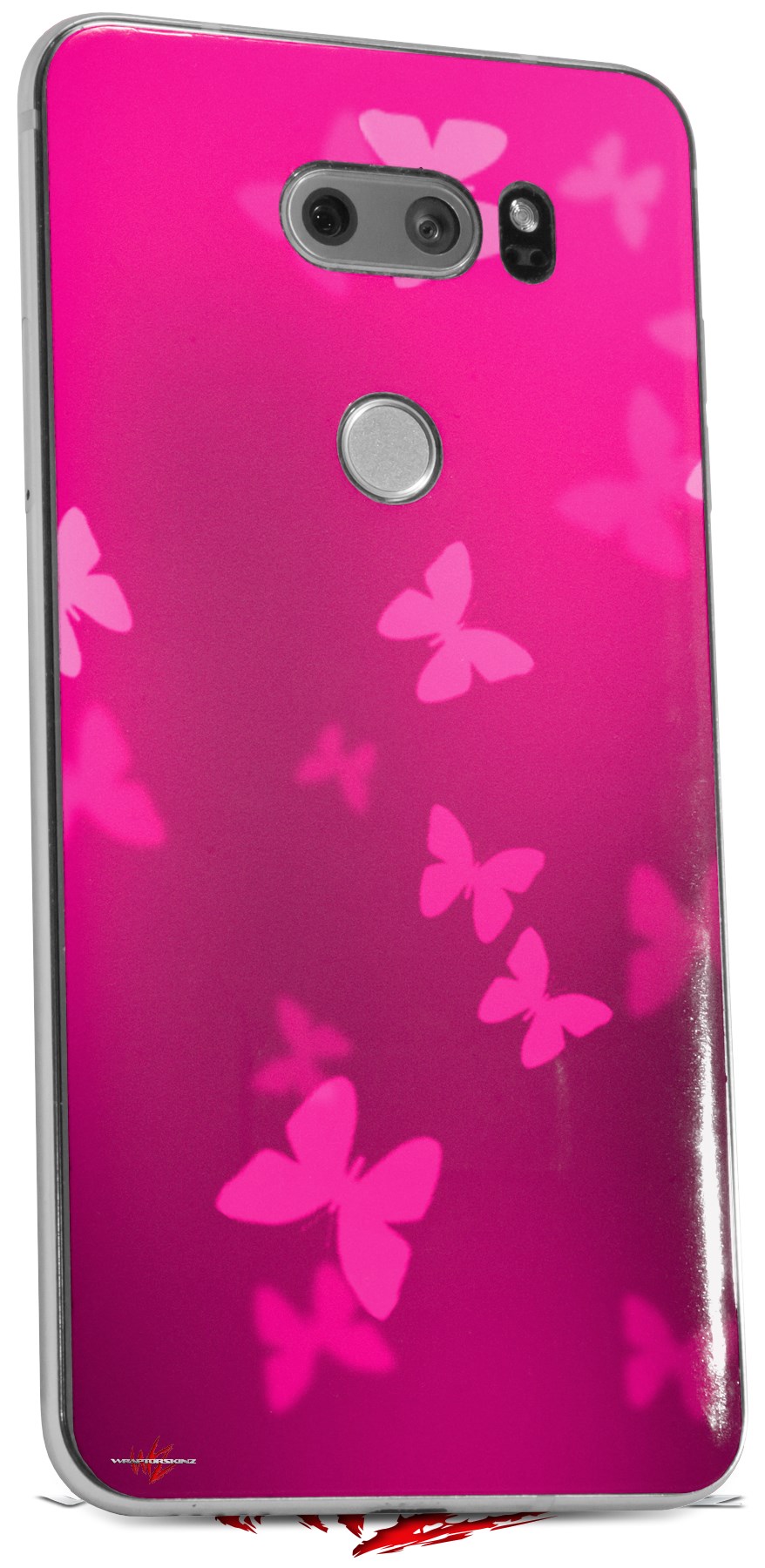 Skin Decal Wrap for LG V30 Bokeh Butterflies Hot Pink