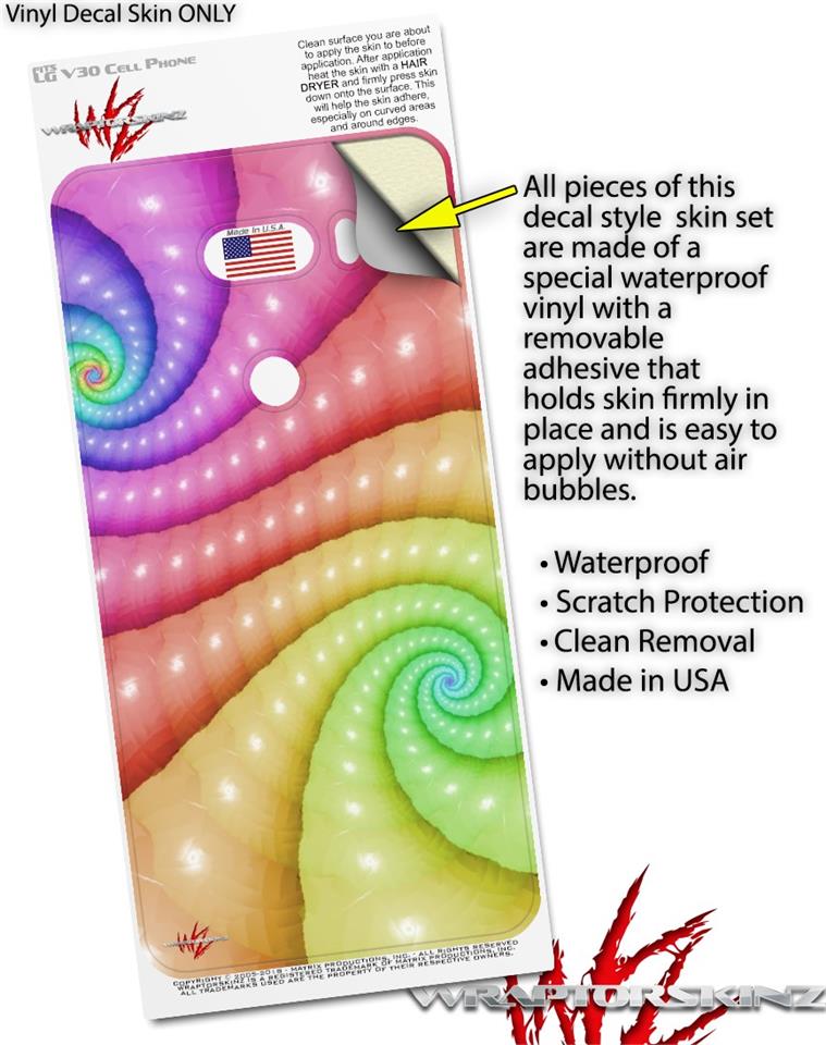 WraptorSkinz® skin wraps for the LG V30 are printed using superb photo quality designs and vibrant colors printed with special fade resistant inks that last even in direct sun for years. WraptorSkinz are a composite of two layers of commercial grade materials. The bottom layer is a soft, flexible vinyl with a special removable adhesive that is easily positioned, applied without air bubbles. Next we print the bottom layer with UV protected, fade resistant inks that deliver superb photo quality designs in vibrant colors. Finally, we bond a professional grade laminate over the entire LG V30 skin adding a glossy protective finish.