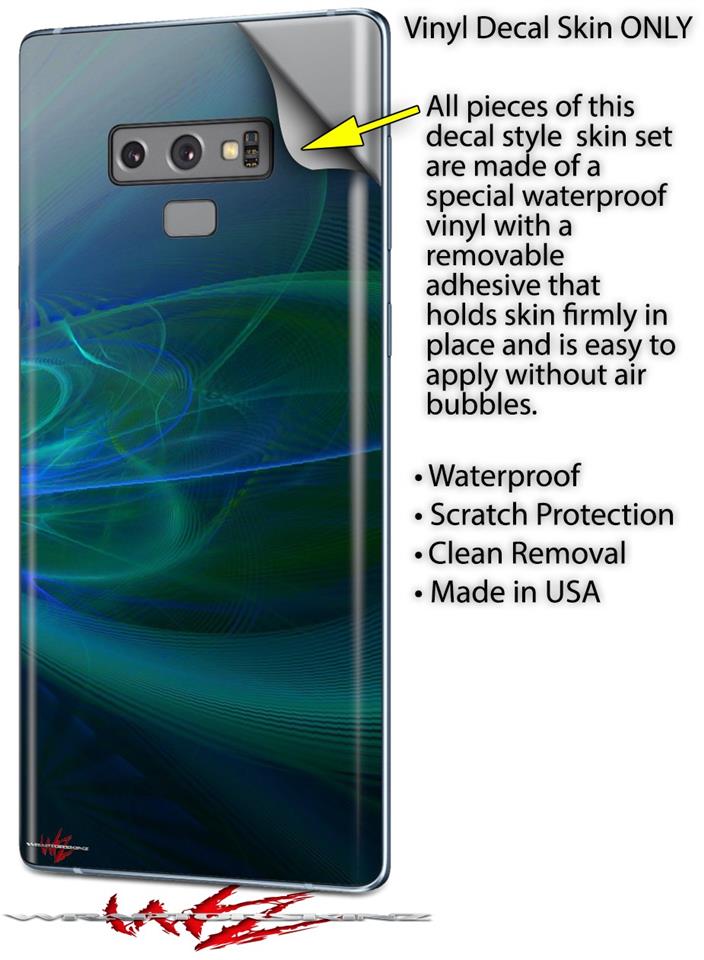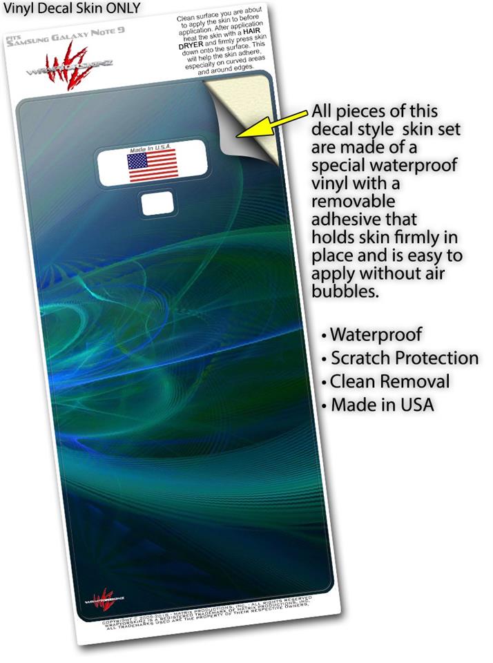 • Decal style vinyl skin covers back and part of the sides of Samsung Galaxy Note 9 - Not a hard case - Fits well with most Clear and TPU cases.