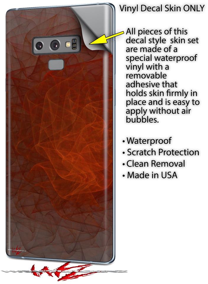 • Decal style vinyl skin covers back and part of the sides of Samsung Galaxy Note 9 - Not a hard case - Fits well with most Clear and TPU cases.