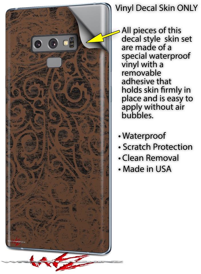 • Decal style vinyl skin covers back and part of the sides of Samsung Galaxy Note 9 - Not a hard case - Fits well with most Clear and TPU cases.