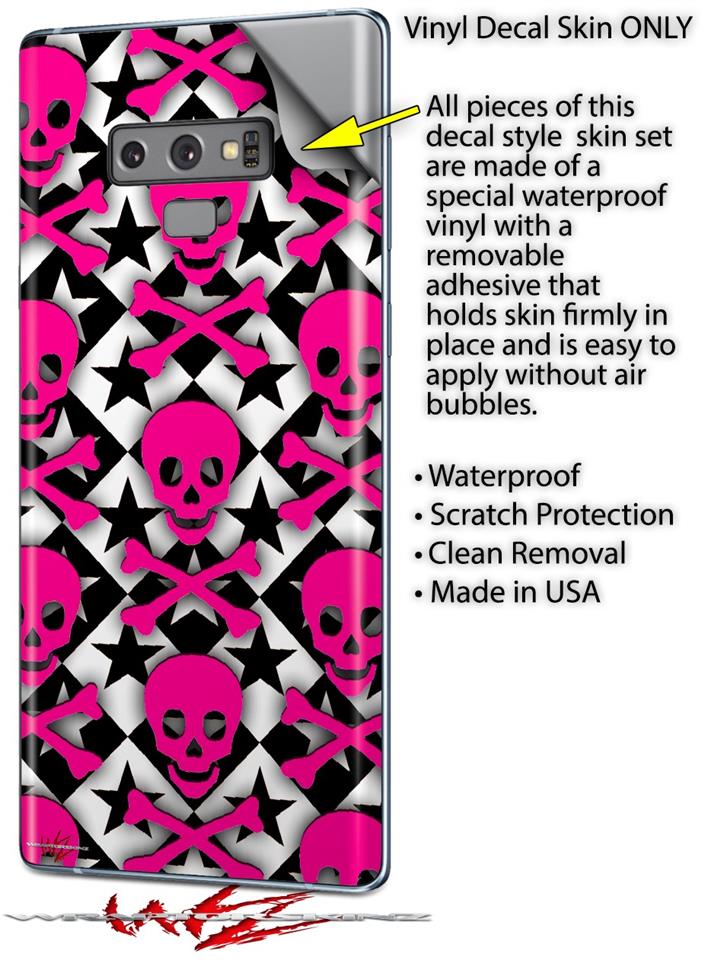 Decal style Skin Wrap compatible with Samsung Galaxy Note 9 Pink Skulls and Stars