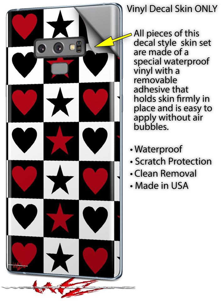 Decal style Skin Wrap compatible with Samsung Galaxy Note 9 Hearts and Stars Red
