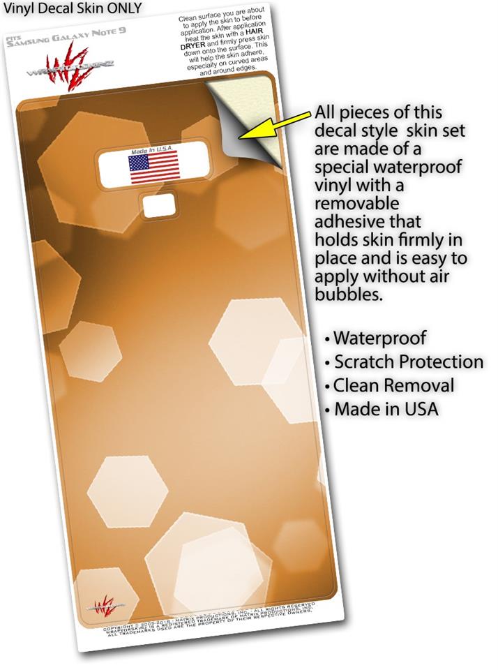 Decal style Skin Wrap compatible with Samsung Galaxy Note 9 Bokeh Hex Orange