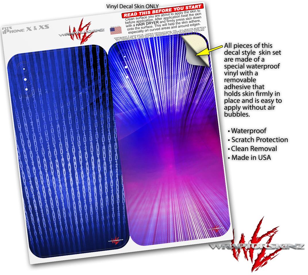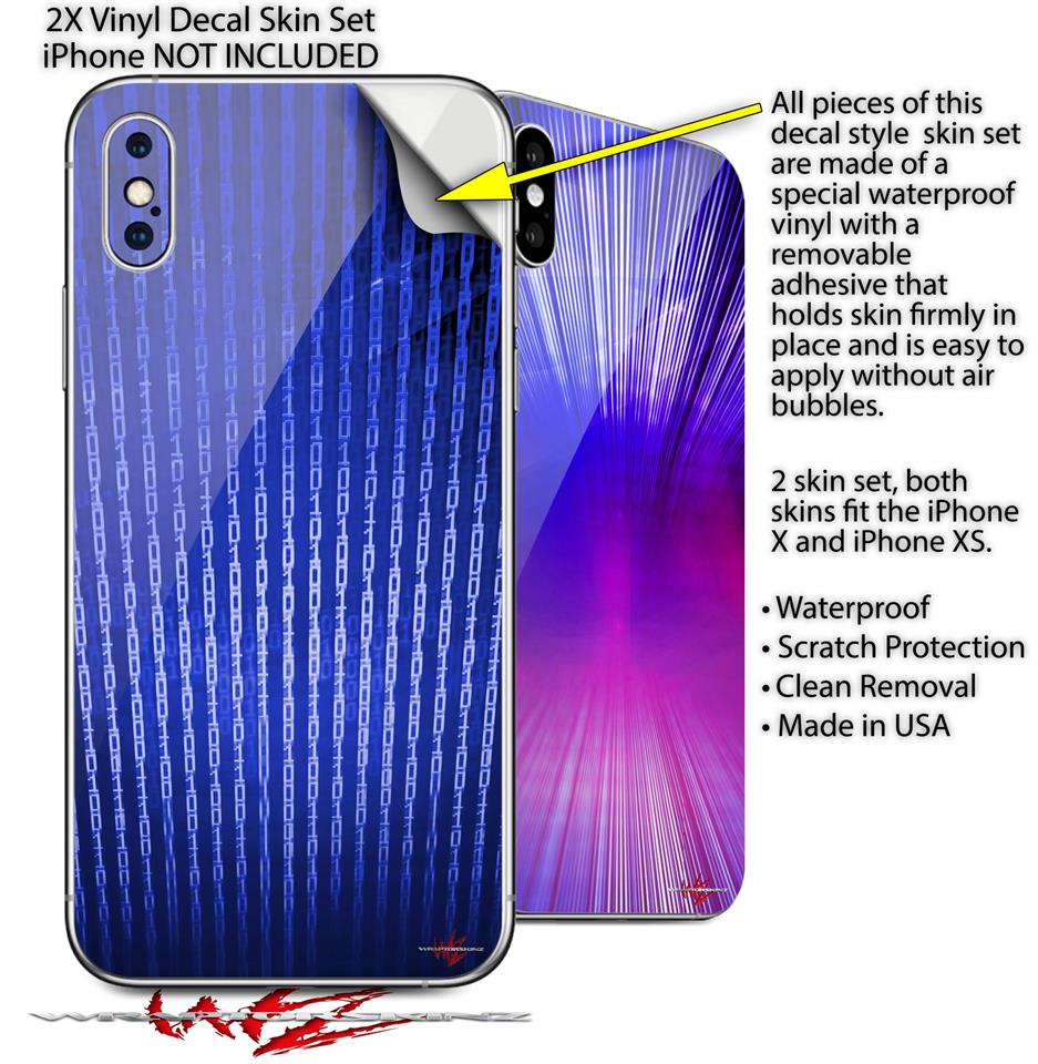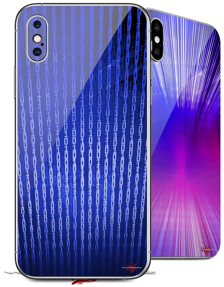 2 Decal style Skin Wraps set for Apple iPhone X and XS Binary Rain Blue