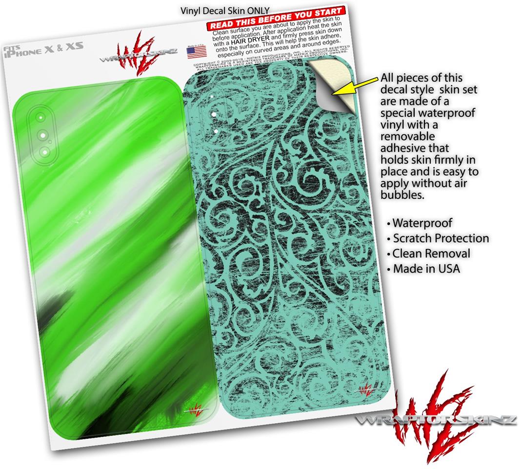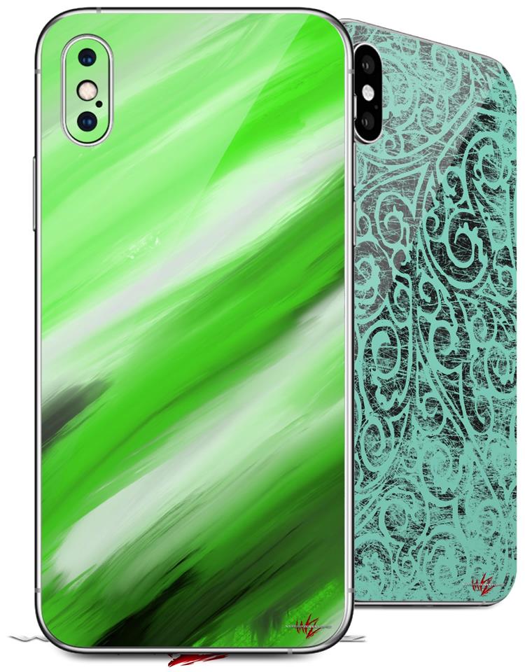 2 Decal style Skin Wraps set for Apple iPhone X and XS Paint Blend Green