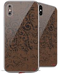 2 Decal style Skin Wraps set for Apple iPhone X and XS Folder Doodles Chocolate Brown