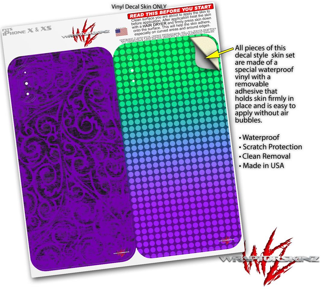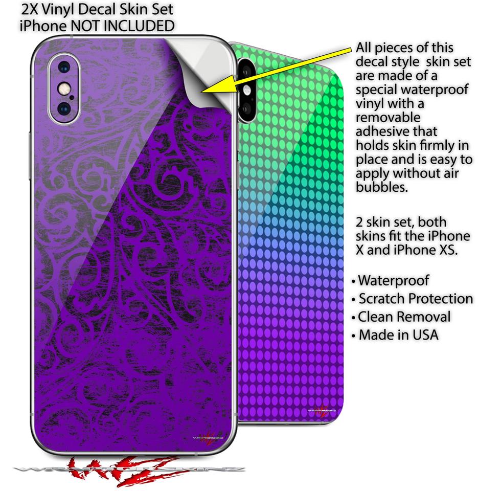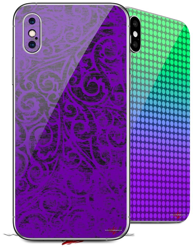 2 Decal style Skin Wraps set for Apple iPhone X and XS Folder Doodles Purple