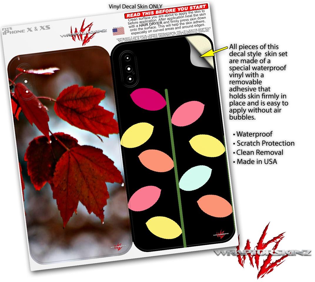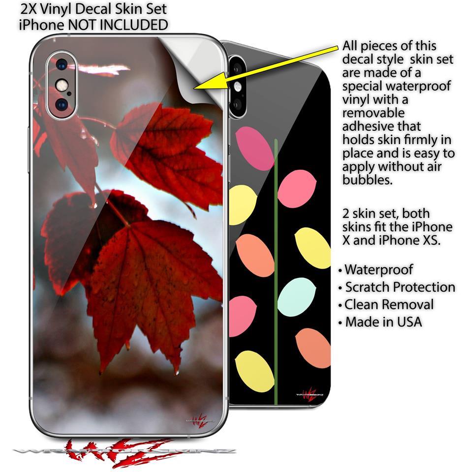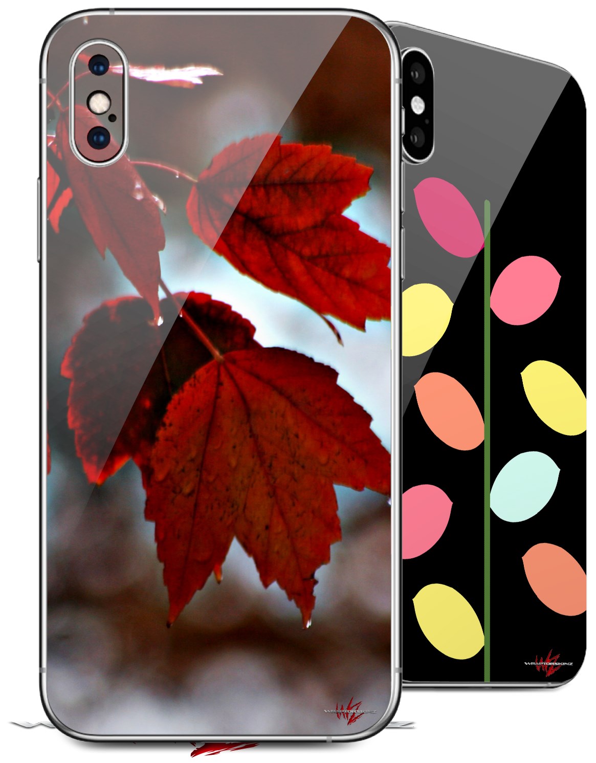 2 Decal style Skin Wraps set for Apple iPhone X and XS Wet Leaves