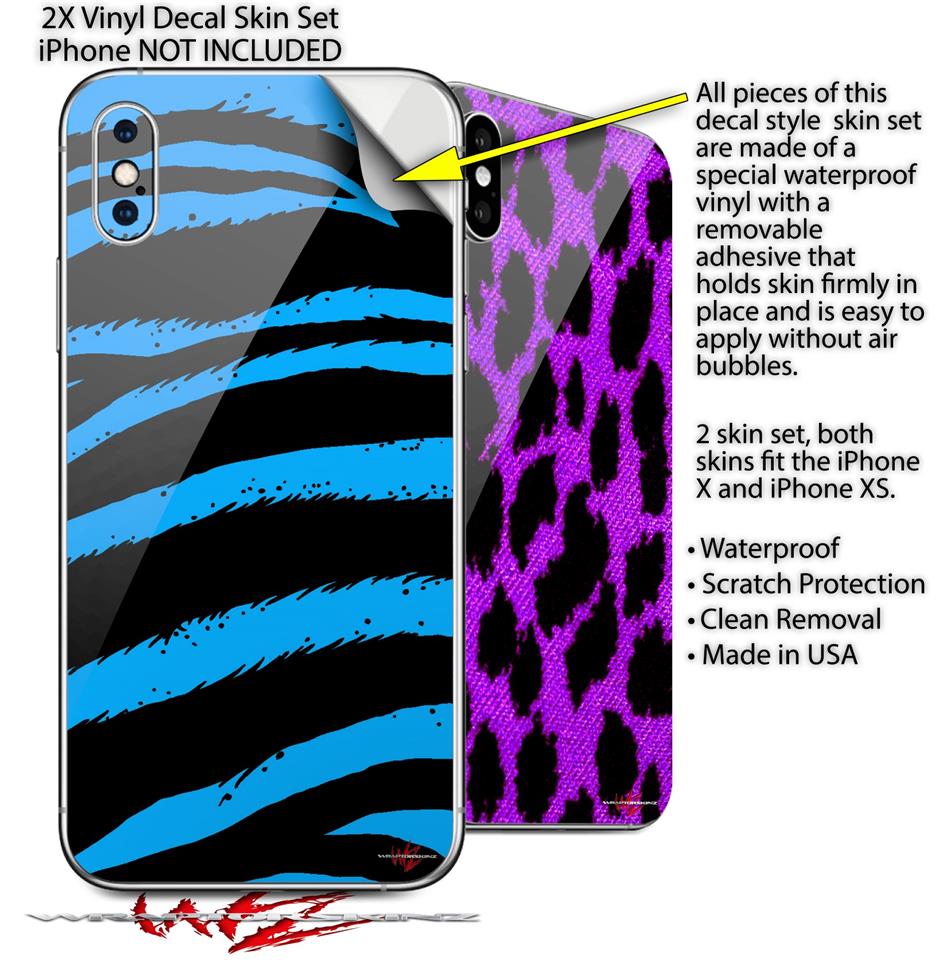 2 Decal style Skin Wraps set for Apple iPhone X and XS Zebra Blue