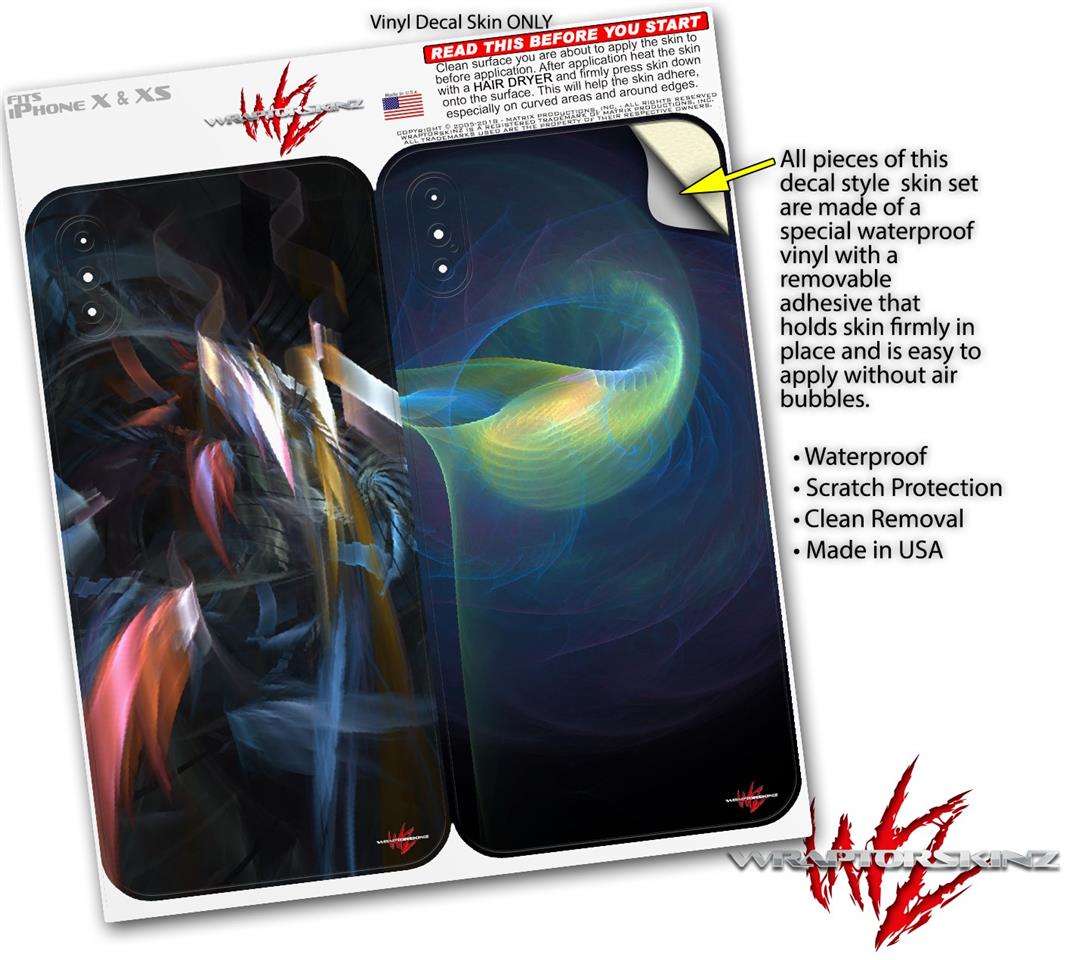 2 Decal style Skin Wraps set for Apple iPhone X and XS Darkness Stirs