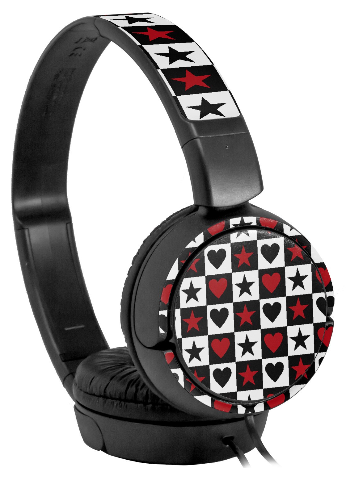 Decal style Skin Wrap for Sony MDR ZX110 Headphones Hearts and Stars Red (HEADPHONES NOT INCLUDED)