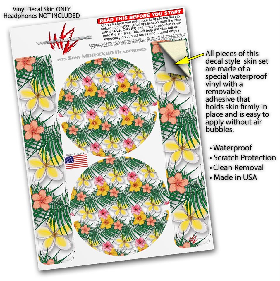 Decal style Skin Wrap for Sony MDR ZX110 Headphones Beach Flowers 02 White (HEADPHONES NOT INCLUDED)