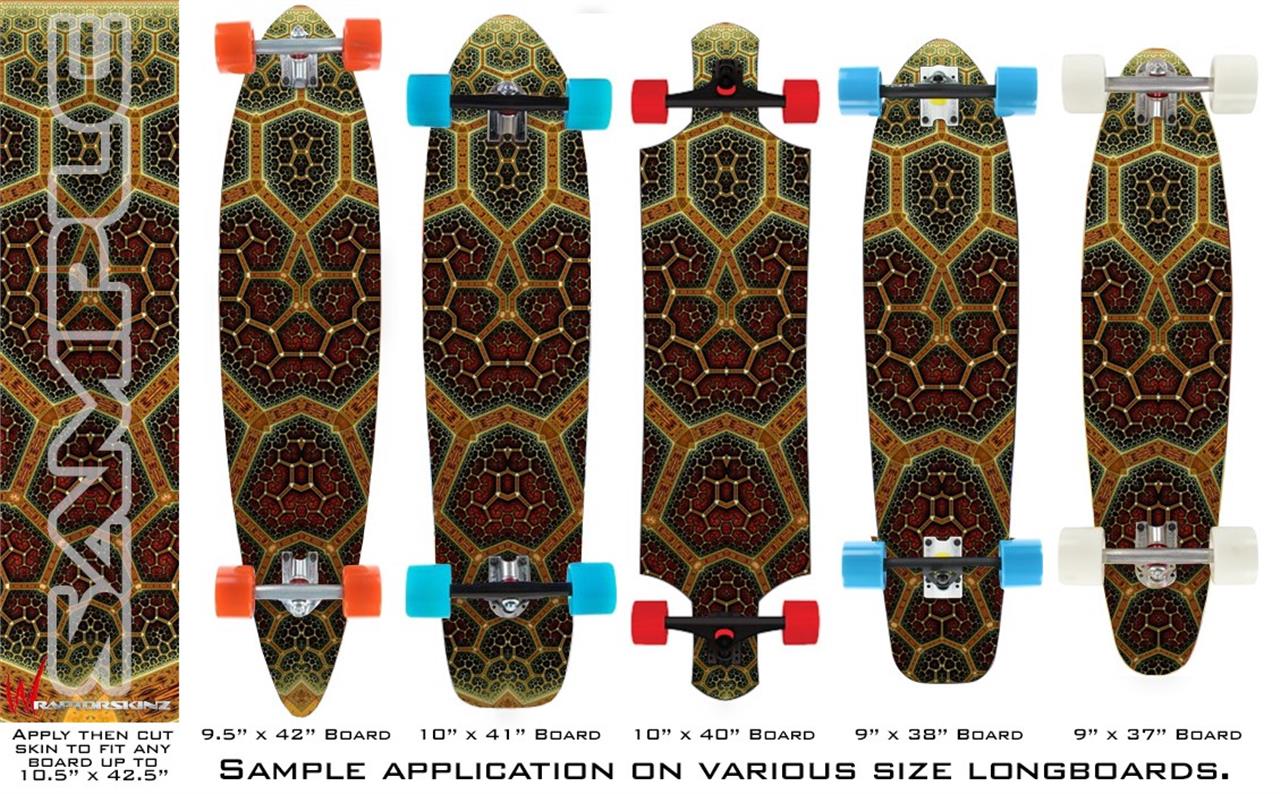 Our longboard skins are made so that one size fits boards up to 10” wide x 42” long. This means after applying the skin it you will trimming to fit you’re the shape of your board with a sharp utility knife.