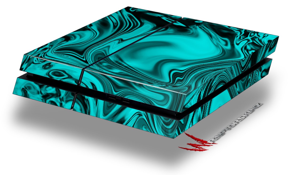 Vinyl Decal Skin Wrap compatible with Sony PlayStation 4 Original Console Liquid Metal Chrome Neon Teal (PS4 NOT INCLUDED)