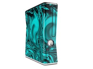 Decal Style Skin compatible with XBOX 360 Slim Vertical Liquid Metal Chrome Neon Teal