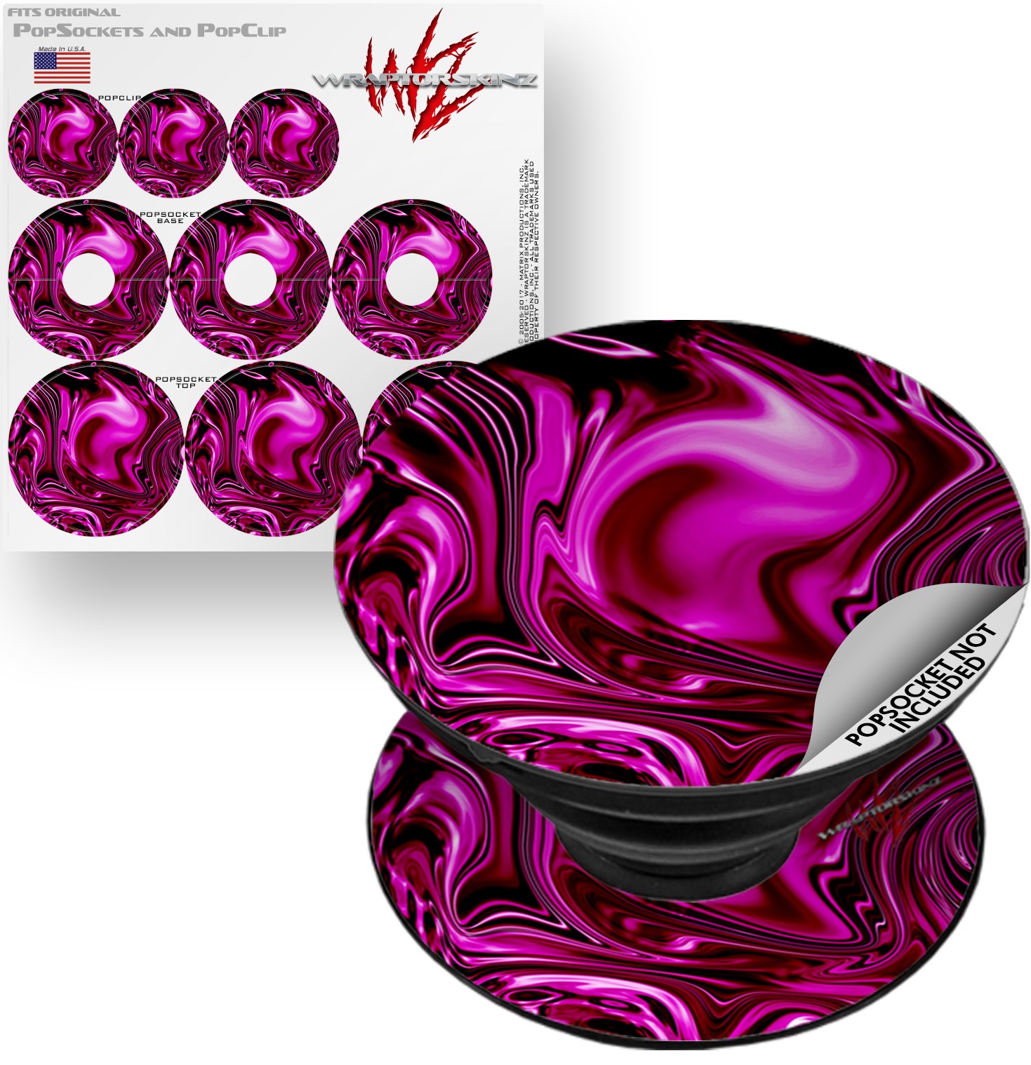 WraptorSkinz® skin decals are printed using superb photo quality designs and vibrant colors printed with special fade resistant inks that last even in direct sun for years. WraptorSkinz® are a composite of two layers of commercial grade materials. The bottom layer is a soft, flexible vinyl with a special removable adhesive that is easily positioned, applied without air bubbles. Next, we print the bottom layer with UV protected, fade resistant inks that deliver superb photo quality designs in vibrant colors. Finally, we bond a professional grade laminate over the entire skin adding a glossy protective finish. This WraptorSkinz skin accessory is not affiliated with, endorsed by and is in no way connected with the PopSocket products or brand.