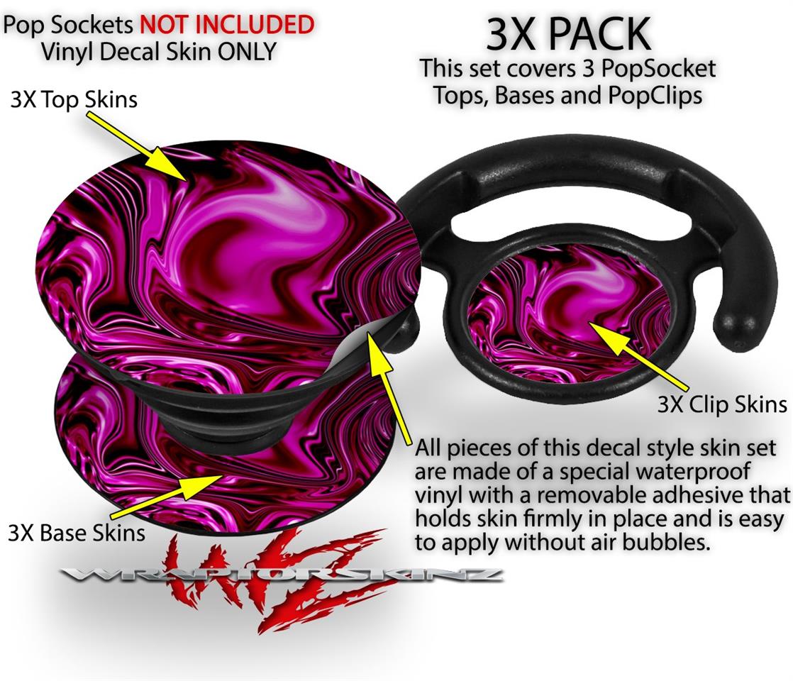 Decal Style Vinyl Skin Wrap 3 Pack compatible with PopSockets Liquid Metal Chrome Hot Pink Fuchsia (POPSOCKET NOT INCLUDED)