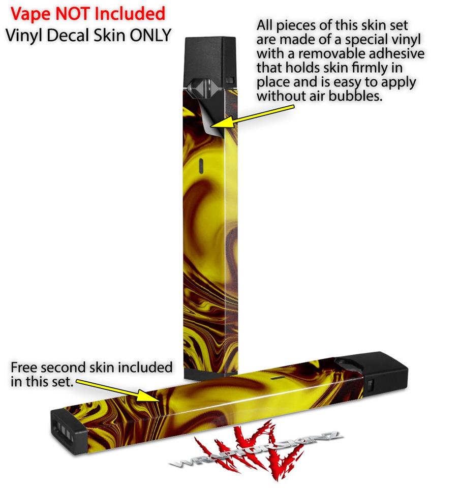 Skin Decal Wrap 2 Pack compatible with Juul Vapes Liquid Metal Chrome Yellow JUUL NOT INCLUDED