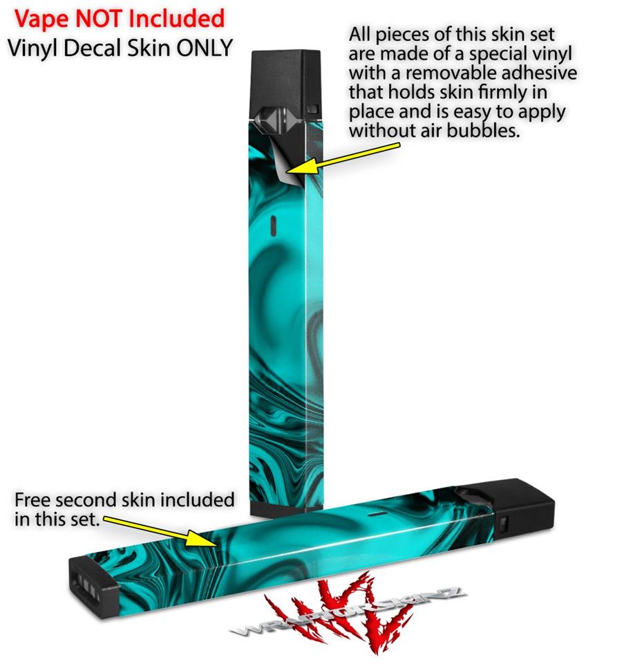 Skin Decal Wrap 2 Pack compatible with Juul Vapes Liquid Metal Chrome Neon Teal JUUL NOT INCLUDED