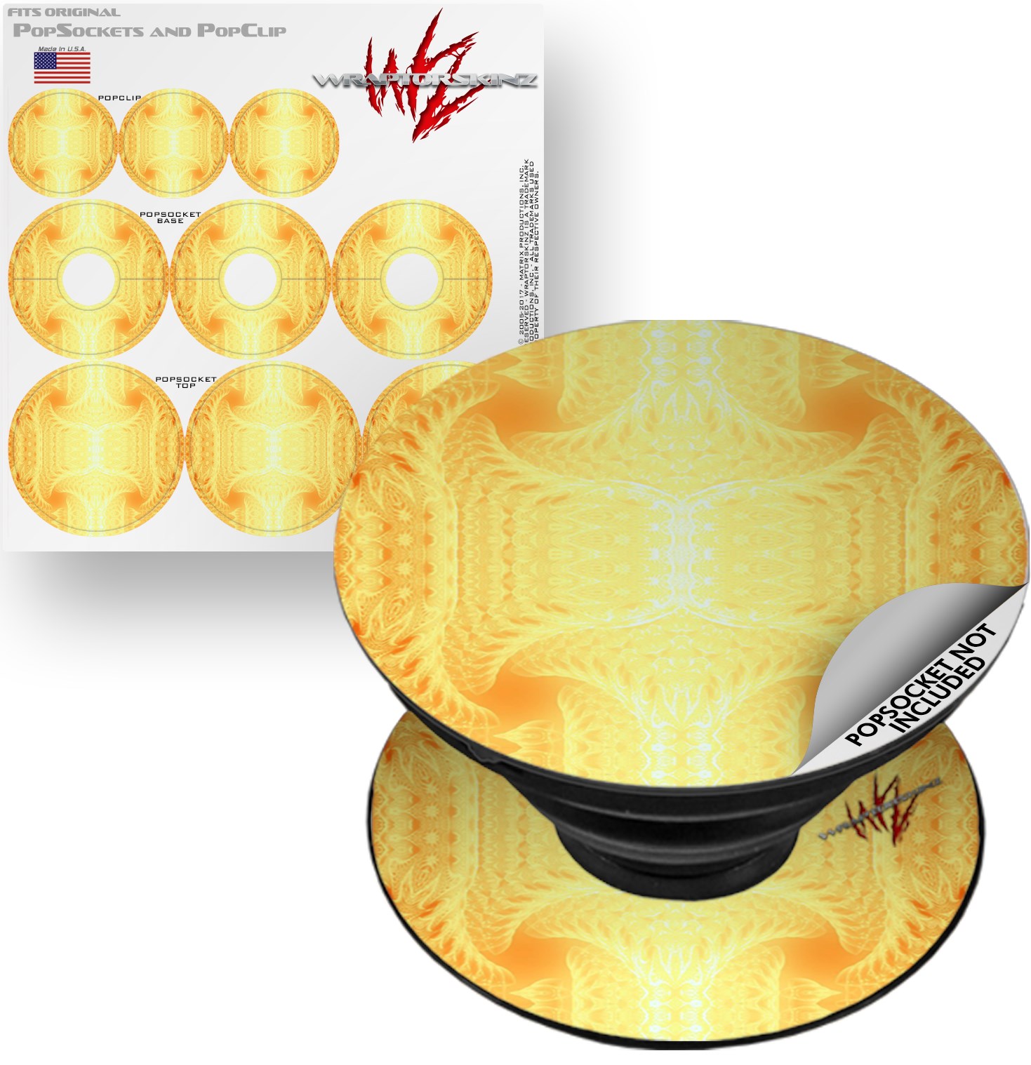 WraptorSkinz® skin decals are printed using superb photo quality designs and vibrant colors printed with special fade resistant inks that last even in direct sun for years. WraptorSkinz® are a composite of two layers of commercial grade materials. The bottom layer is a soft, flexible vinyl with a special removable adhesive that is easily positioned, applied without air bubbles. Next, we print the bottom layer with UV protected, fade resistant inks that deliver superb photo quality designs in vibrant colors. Finally, we bond a professional grade laminate over the entire skin adding a glossy protective finish. This WraptorSkinz skin accessory is not affiliated with, endorsed by and is in no way connected with the PopSocket products or brand.
