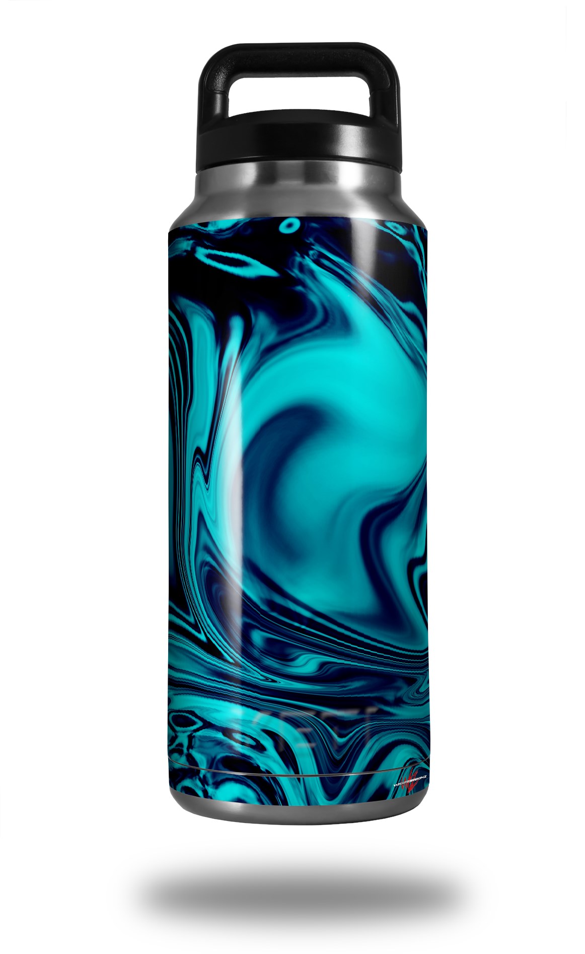 Skin Decal Wrap compatible with Yeti Rambler Bottle 36oz Liquid Metal Chrome Neon Blue (YETI NOT INCLUDED)