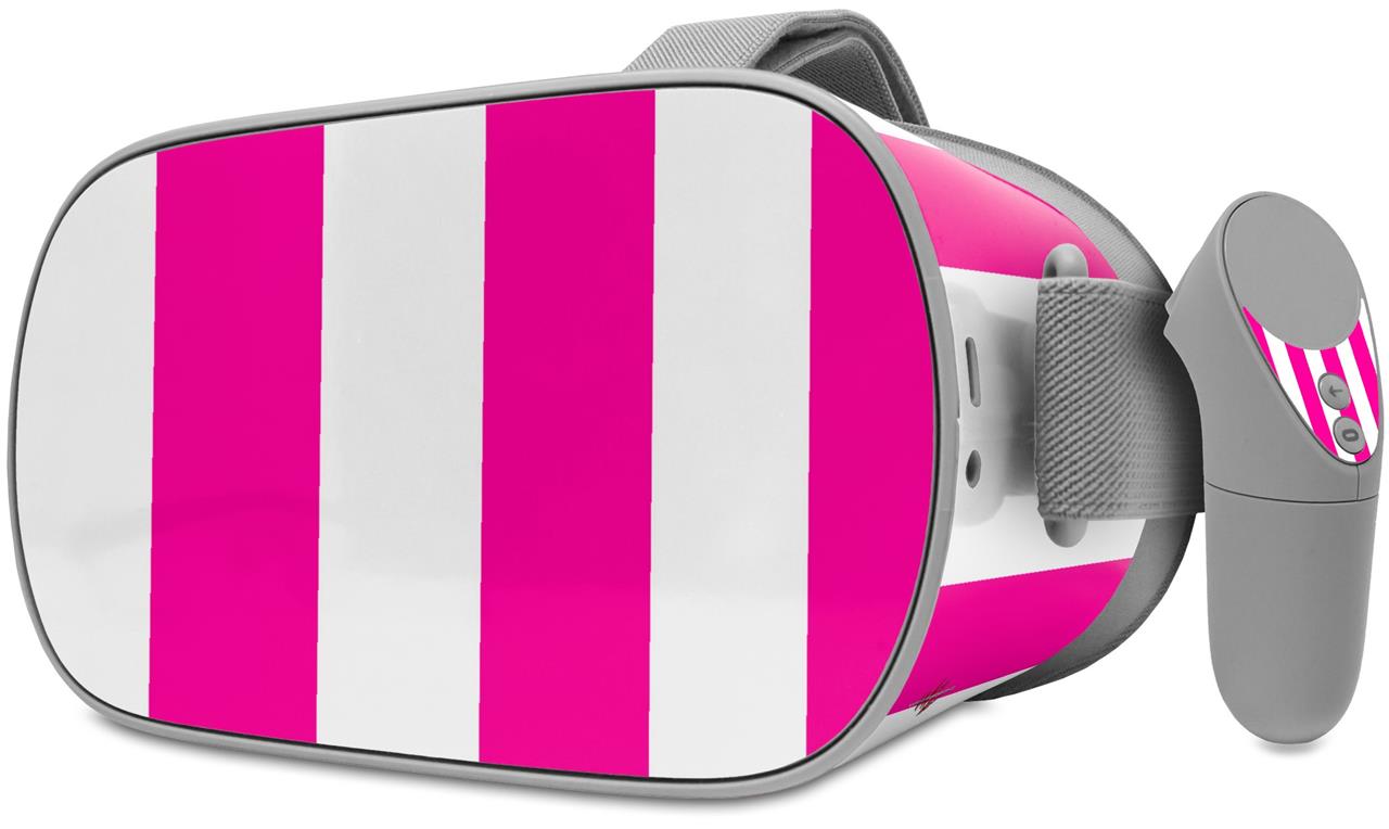 Decal style Skin Wrap compatible with Oculus Go Headset - Psycho Stripes Hot Pink and White (OCULUS NOT INCLUDED)