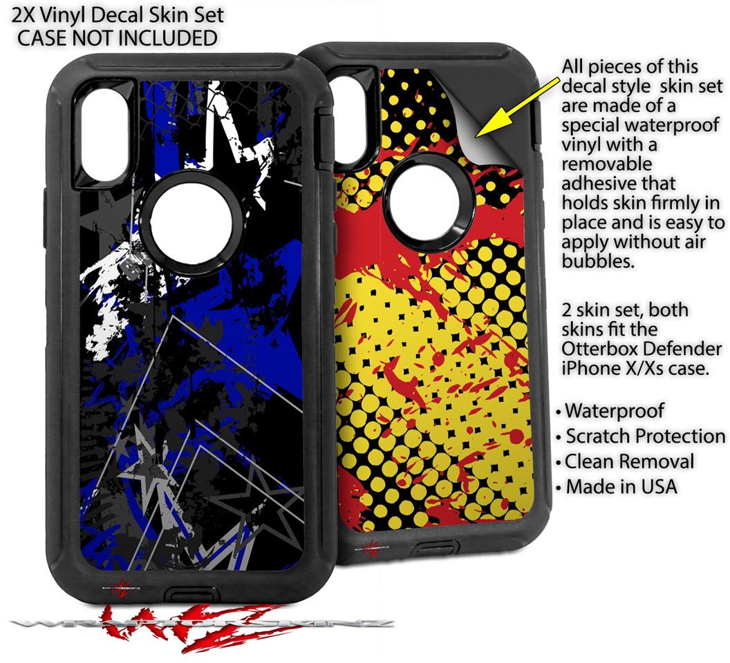 2x Decal style Skin Wrap Set compatible with Otterbox Defender iPhone X and Xs Case - Baja 0003 Royal Blue (CASE NOT INCLUDED)