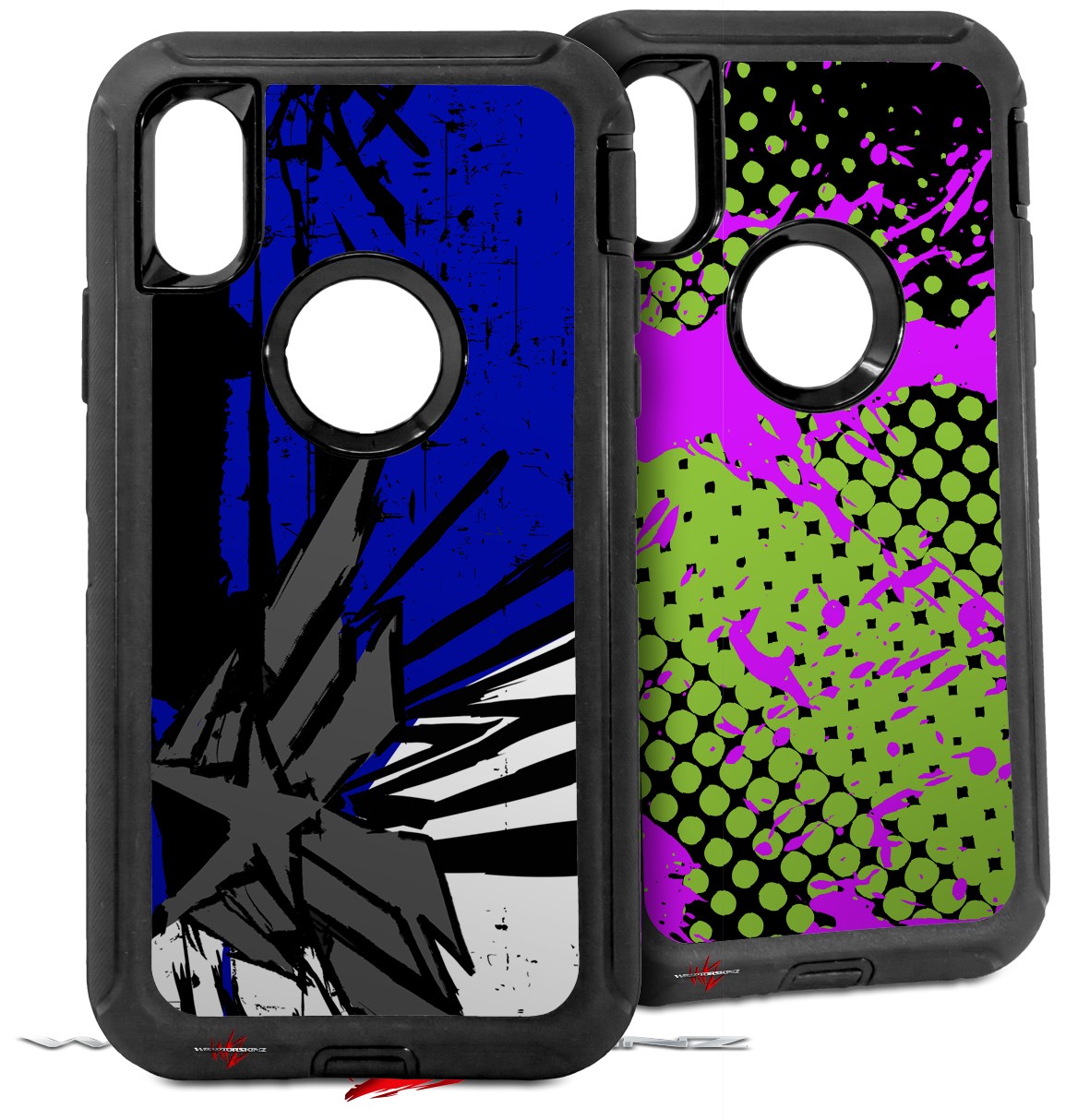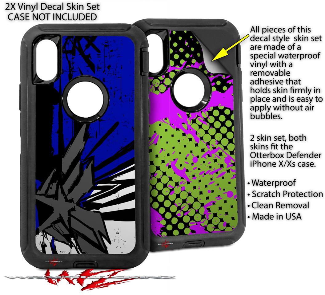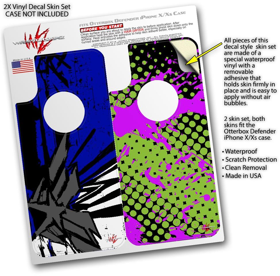 • CASE NOT INCLUDED - 2 Skins cover back surface of 2 Otterbox Defender iPhone X / Xs cases as pictured.