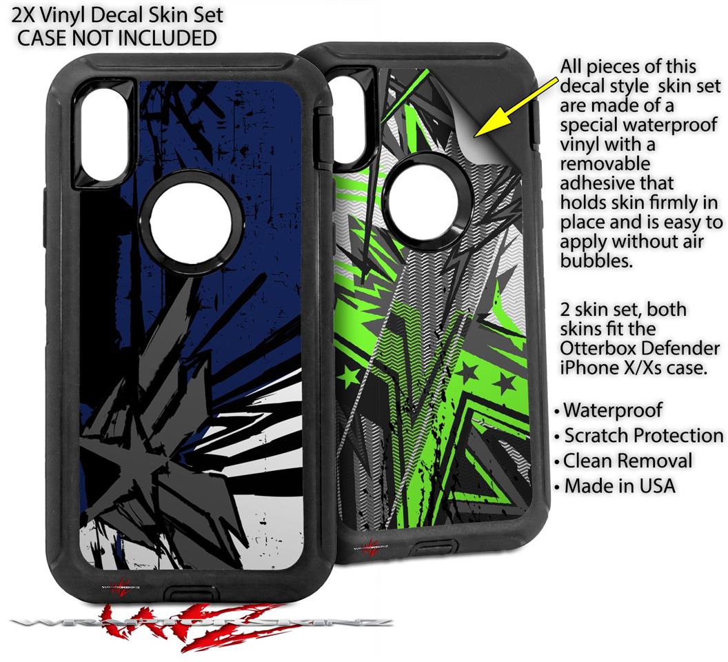 2x Decal style Skin Wrap Set compatible with Otterbox Defender iPhone X and Xs Case - Baja 0040 Blue Navy (CASE NOT INCLUDED)