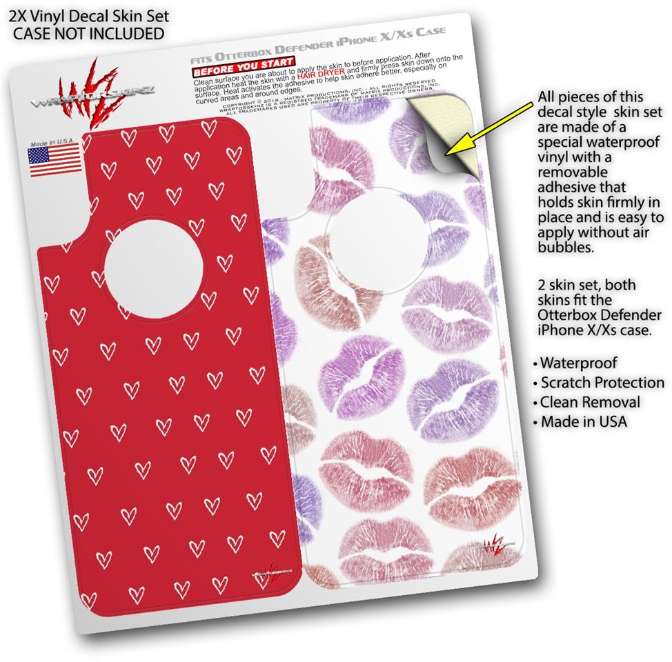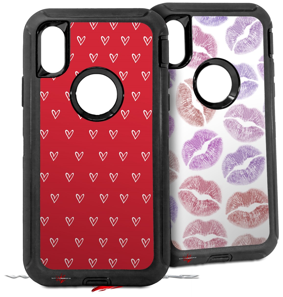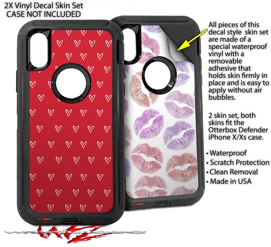 2x Decal style Skin Wrap Set compatible with Otterbox Defender iPhone X and Xs Case - Hearts Red On White (CASE NOT INCLUDED)