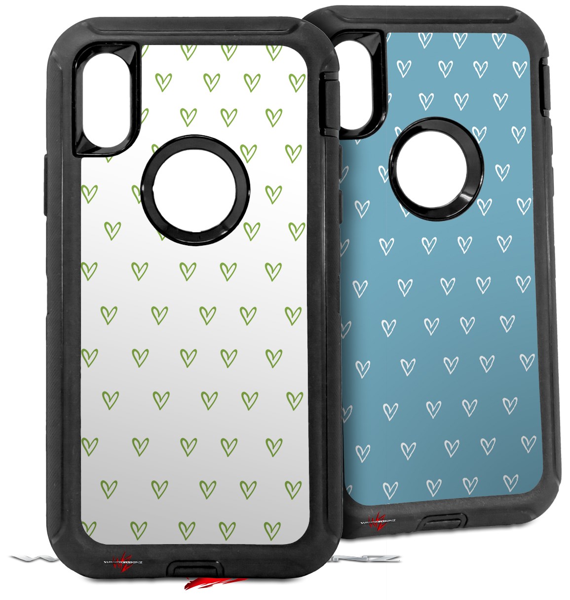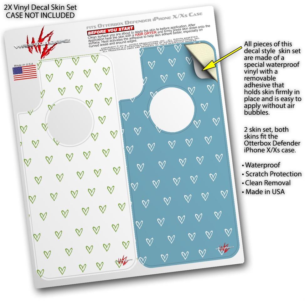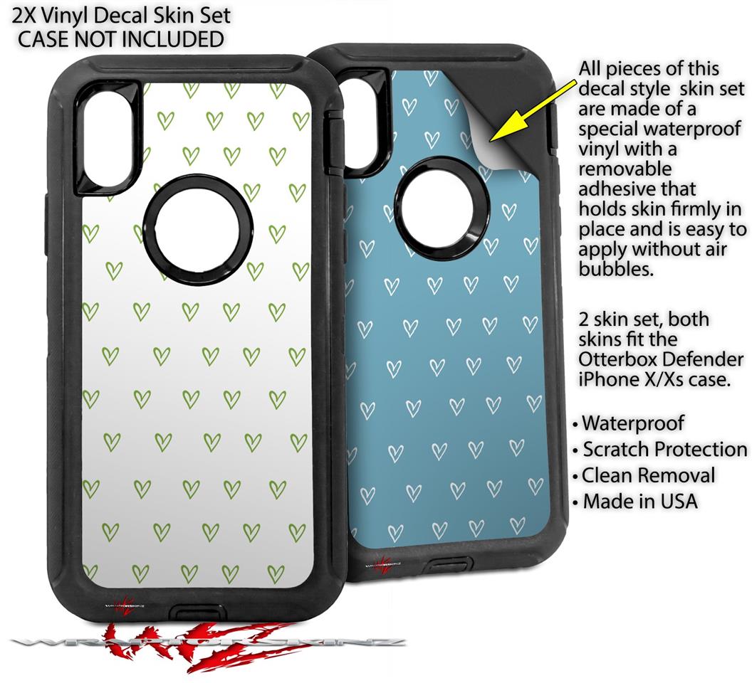 2x Decal style Skin Wrap Set compatible with Otterbox Defender iPhone X and Xs Case - Hearts Green (CASE NOT INCLUDED)