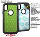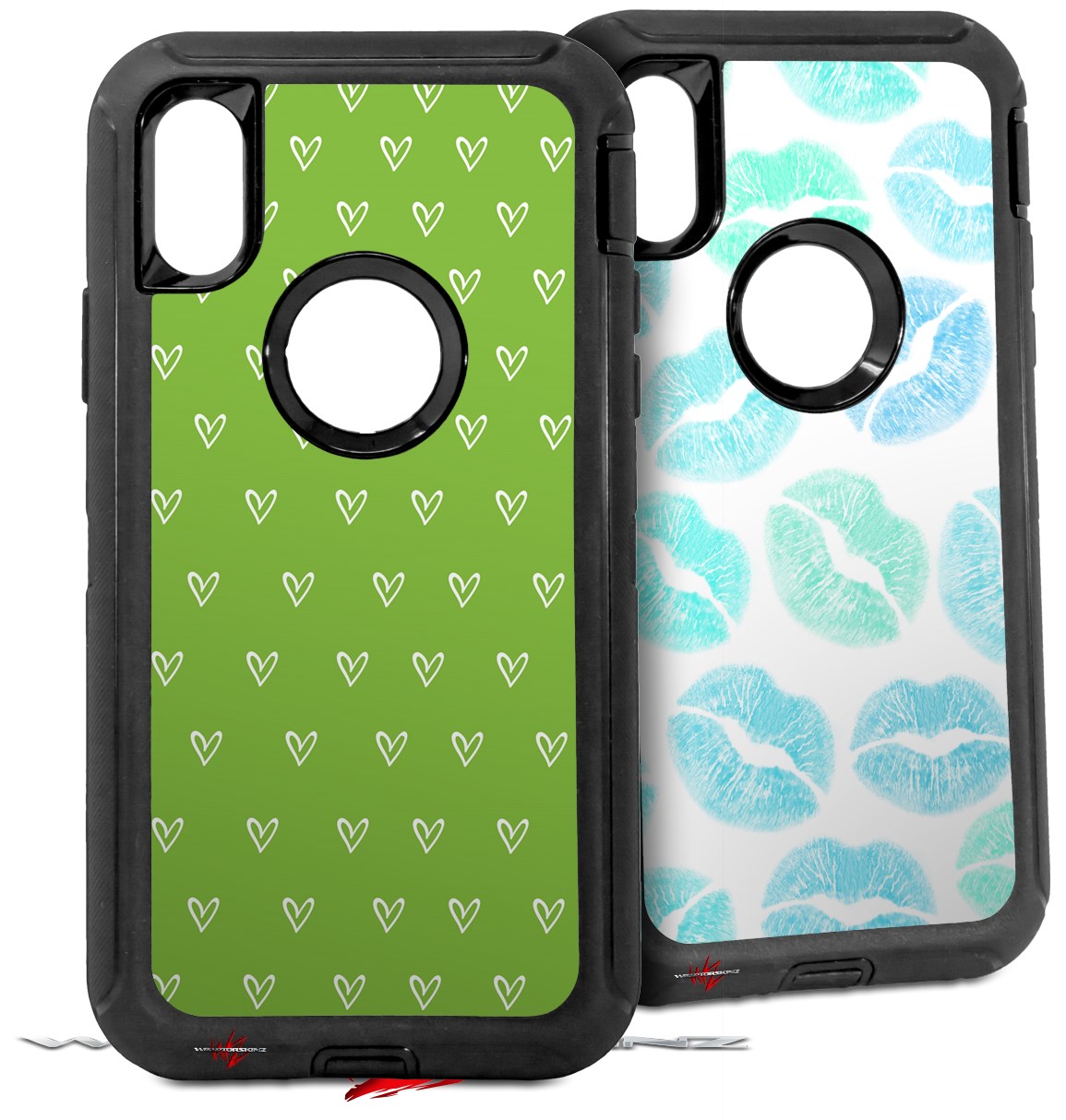 2x Decal style Skin Wrap Set compatible with Otterbox Defender iPhone X and Xs Case - Hearts Green On White (CASE NOT INCLUDED)