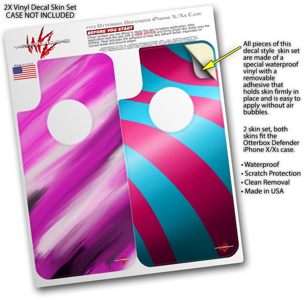 2x Decal style Skin Wrap Set compatible with Otterbox Defender iPhone X and Xs Case - Paint Blend Hot Pink (CASE NOT INCLUDED)