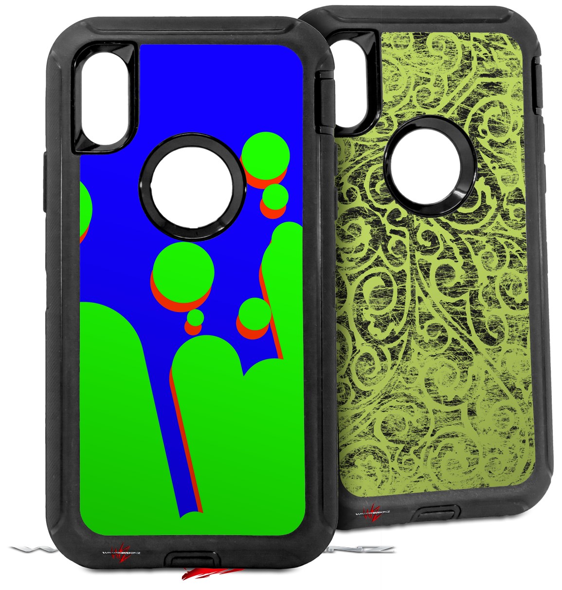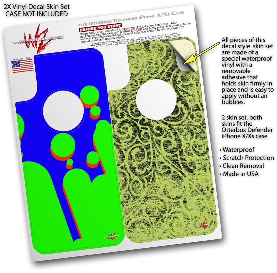 • CASE NOT INCLUDED - 2 Skins cover back surface of 2 Otterbox Defender iPhone X / Xs cases as pictured.
